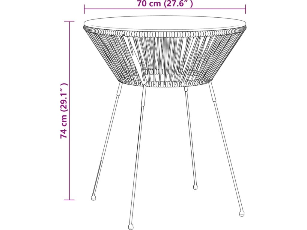 - Materiál: kulatý PVC ratan, tvrzené sklo, práškově lakovaná ocel