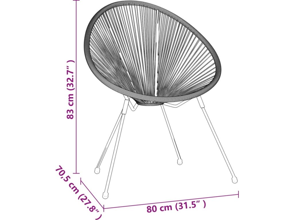 - Materiál: kulatý PVC ratan, práškově lakovaná ocel
