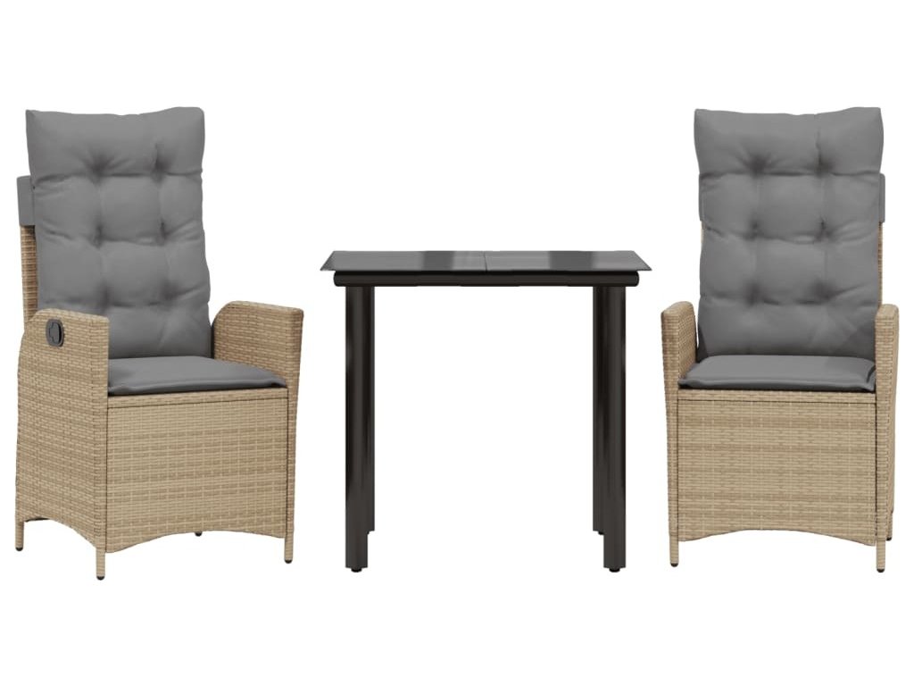 3dílný zahradní jídelní set s poduškami béžový polyratan [3213264]