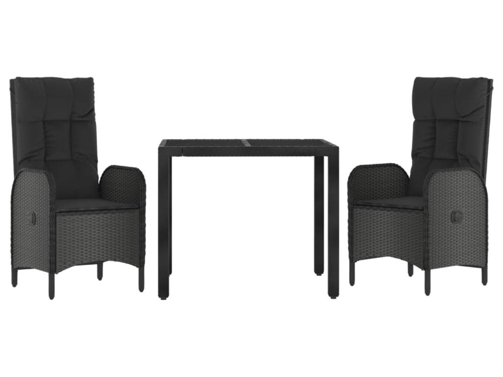 3dílný zahradní jídelní set s poduškami černý polyratan [3185053]