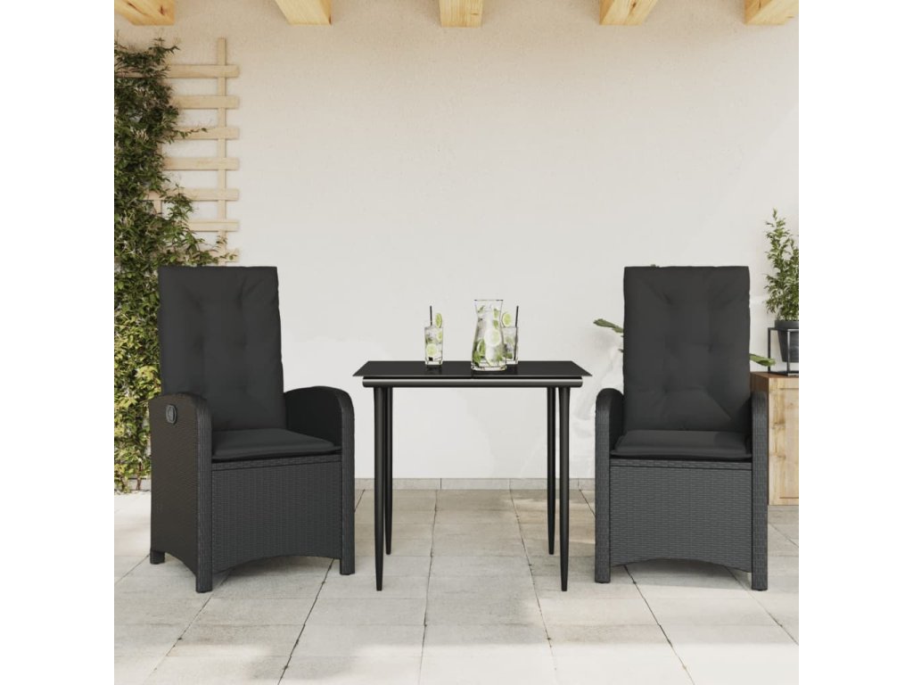 3dílný zahradní jídelní set s poduškami černý polyratan [3212310]