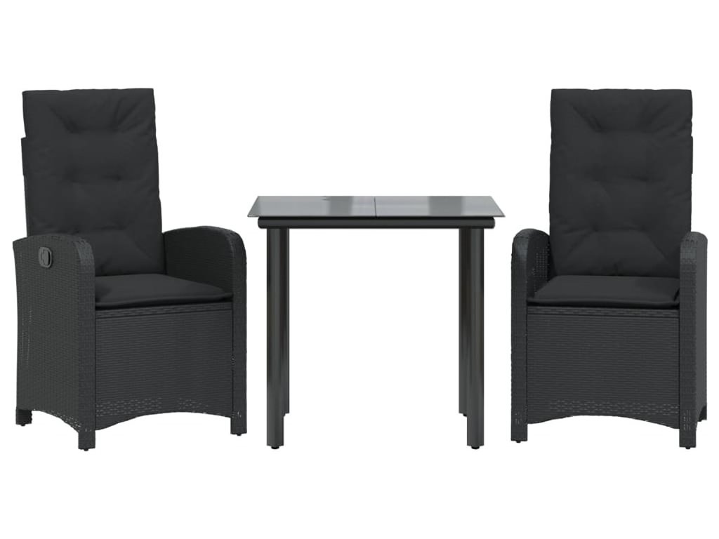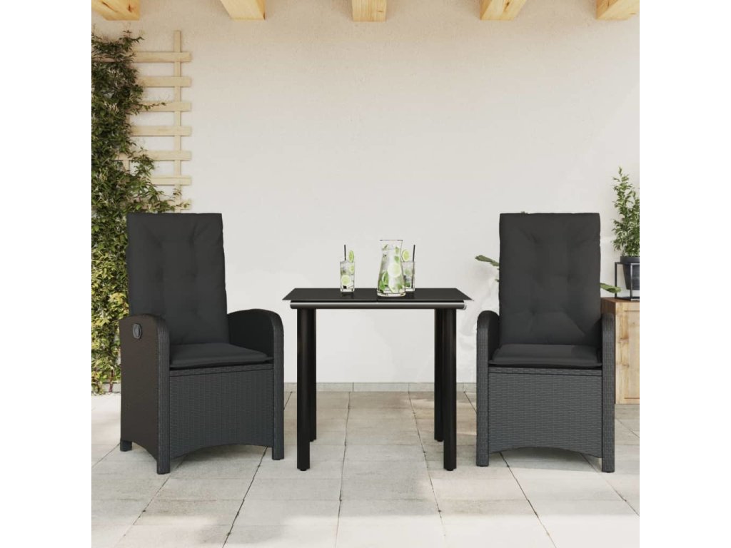 3dílný zahradní jídelní set s poduškami černý polyratan [3212320]