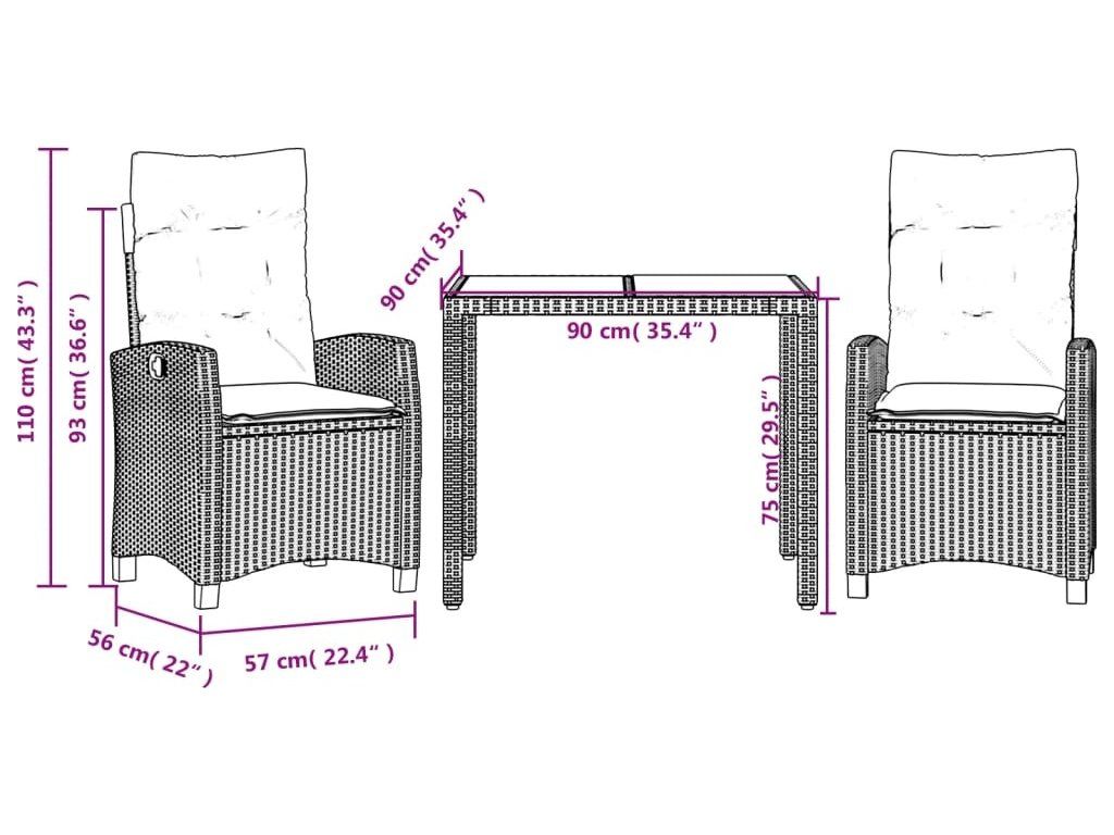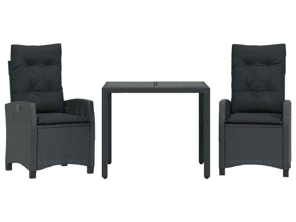 3dílný zahradní jídelní set s poduškami černý polyratan [3212635]