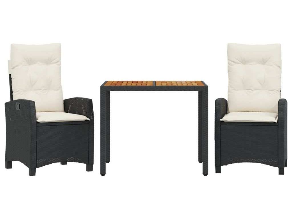 3dílný zahradní jídelní set s poduškami černý polyratan [3212653]