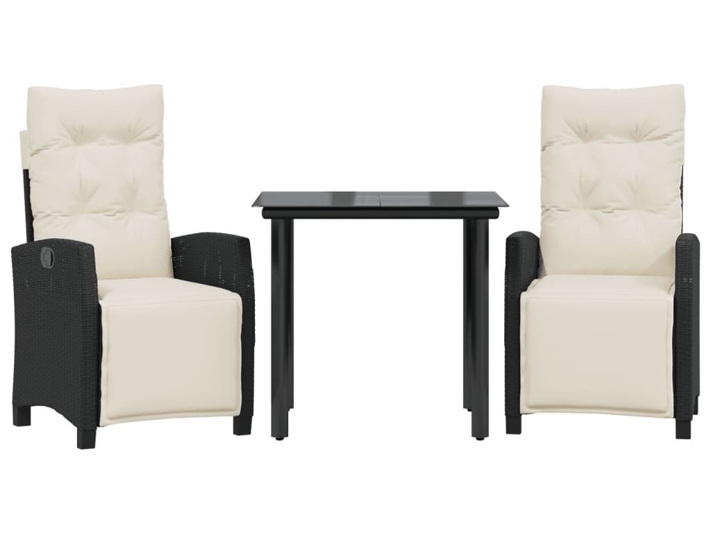 3dílný zahradní jídelní set s poduškami černý polyratan [3212953]