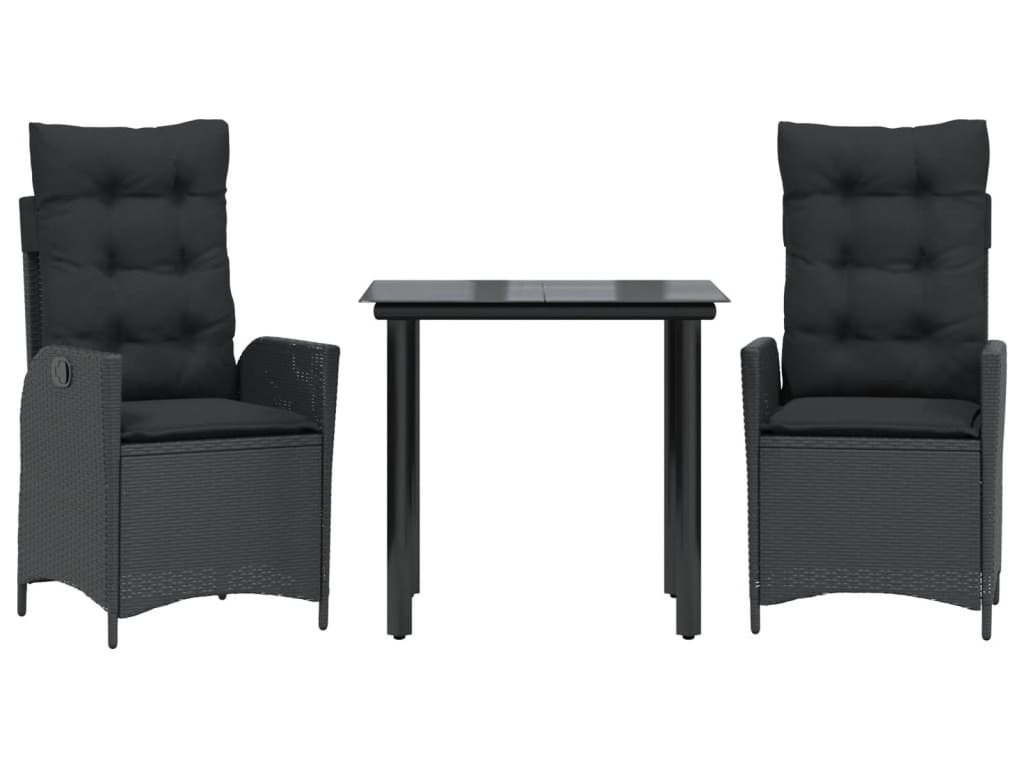 3dílný zahradní jídelní set s poduškami černý polyratan [3213184]