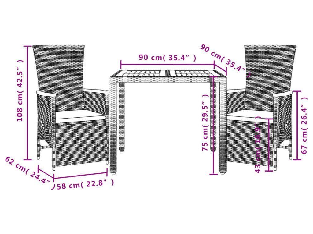 - Materiál: PE ratan, práškově lakovaná ocel, masivní akáciové dřevo s olejovou povrchovou úpravou