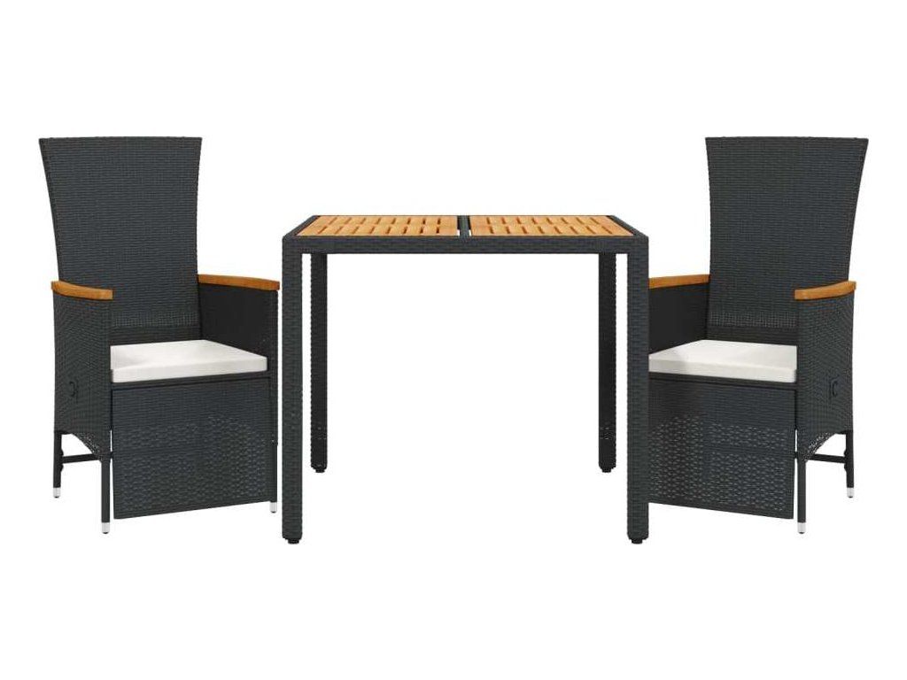 3dílný zahradní jídelní set s poduškami černý polyratan [3277503]