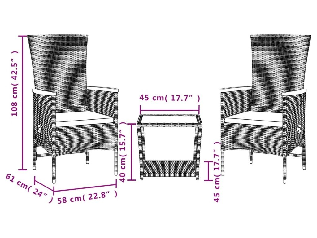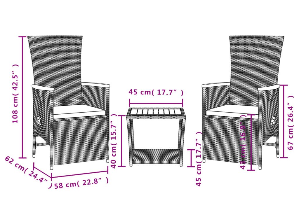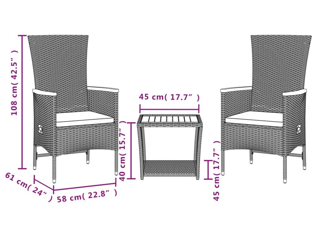 3dílný zahradní jídelní set s poduškami polyratan [3277540]
