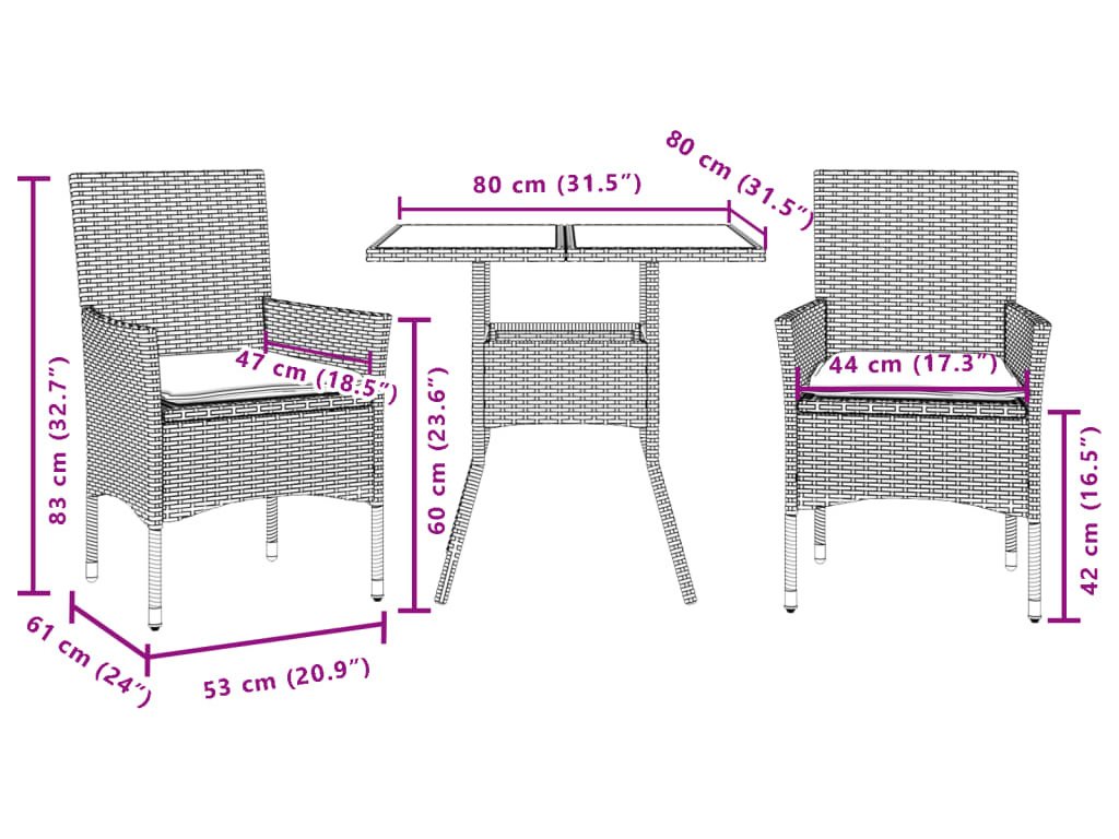 3dílný zahradní jídelní set s poduškami polyratan a sklo [3278611]