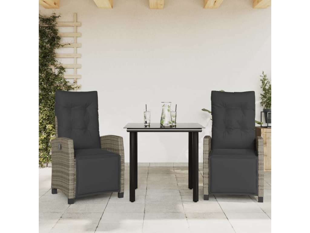 3dílný zahradní jídelní set s poduškami šedý polyratan [3212995]
