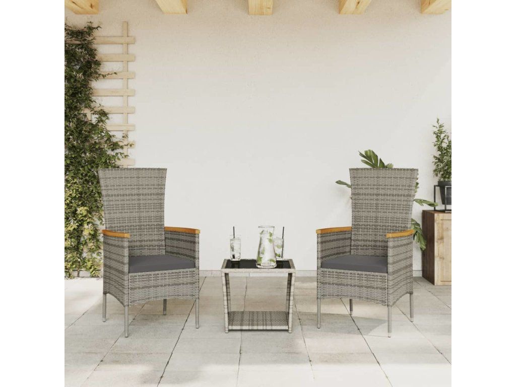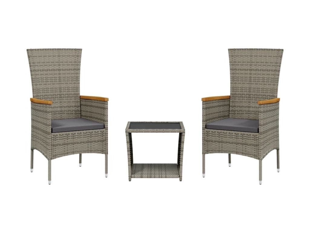 3dílný zahradní jídelní set s poduškami šedý polyratan [3277562]
