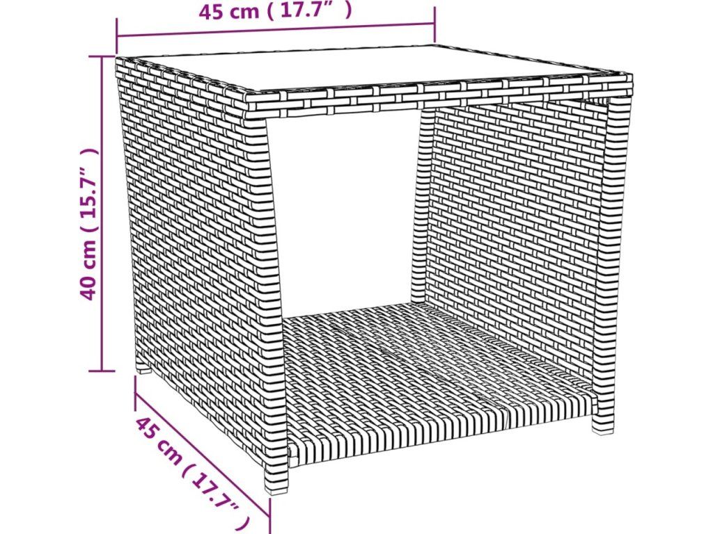 - Materiál: PE ratan, práškově lakovaná ocel, tvrzené sklo