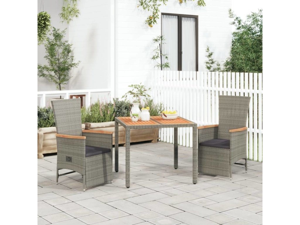 3dílný zahradní jídelní set s poduškami šedý polyratan [3157555]
