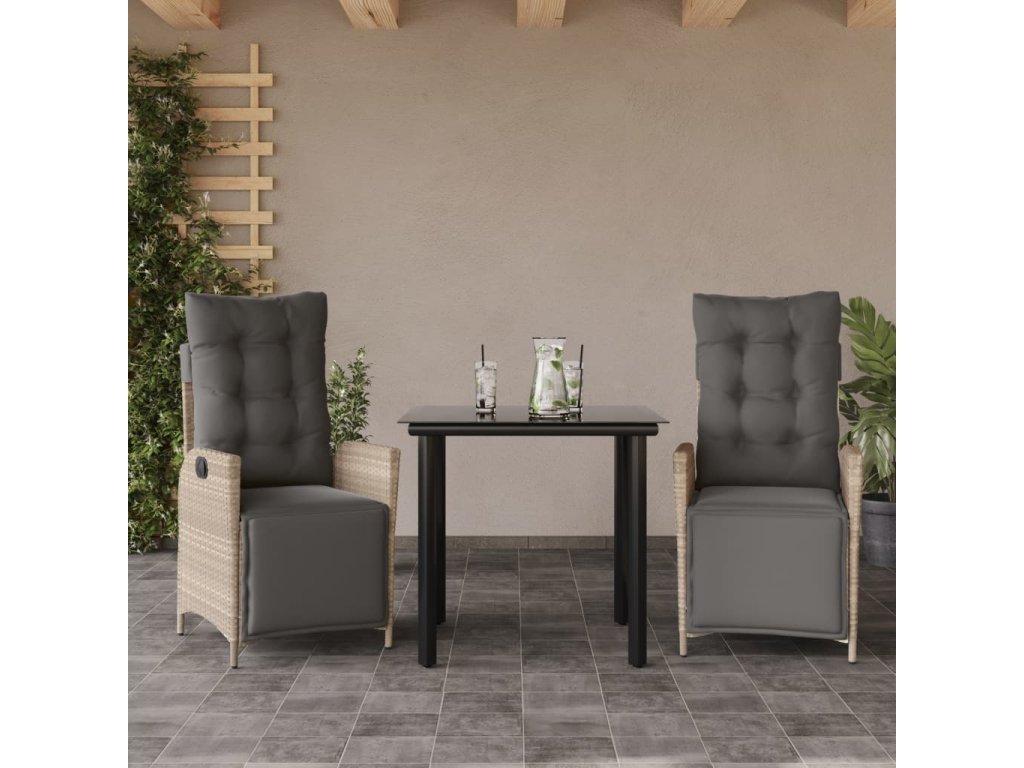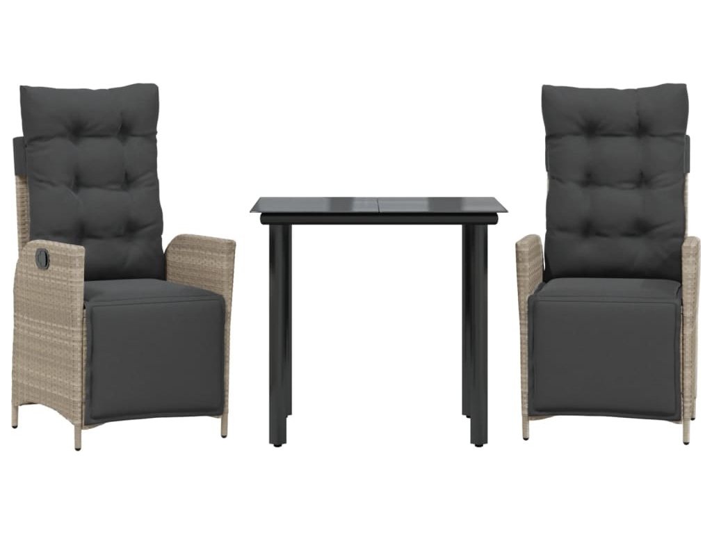 3dílný zahradní jídelní set s poduškami světle šedý polyratan [3213469]