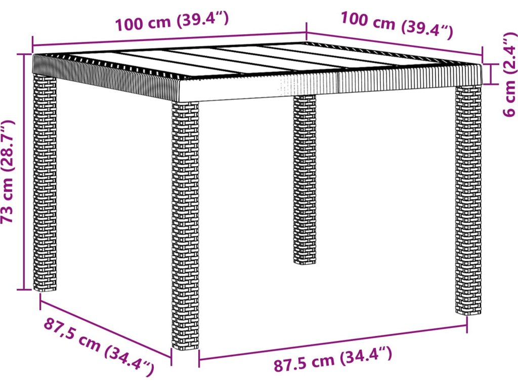 - Materiály: Úplně vyrobeno z odolného poly ratanu, tento set je navržen tak, aby odolával venkovním podmínkám. UV-odolné vlastnosti zajišťují dlouhou životnost, což z něj dělá vynikající volbu pro letní jídelní setkání.