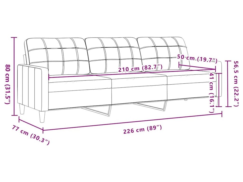 - Celkové rozměry: 226 x 77 x 80 cm (Š x H x V)
