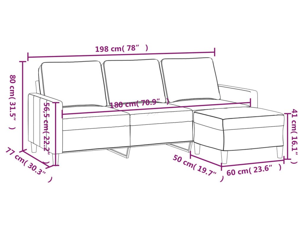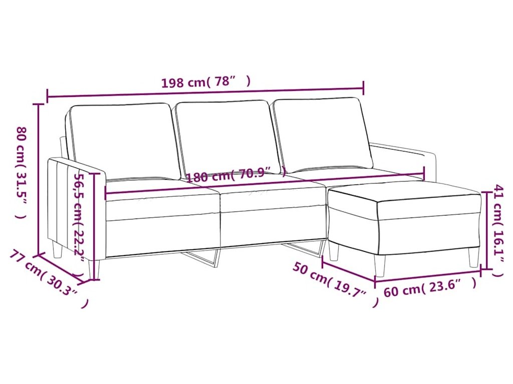 3místná pohovka s podnožkou 180 cm samet [3201056]