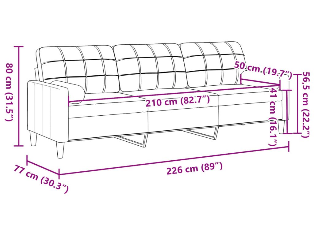 3místná pohovka s polštáři 210 cm samet [3278248]