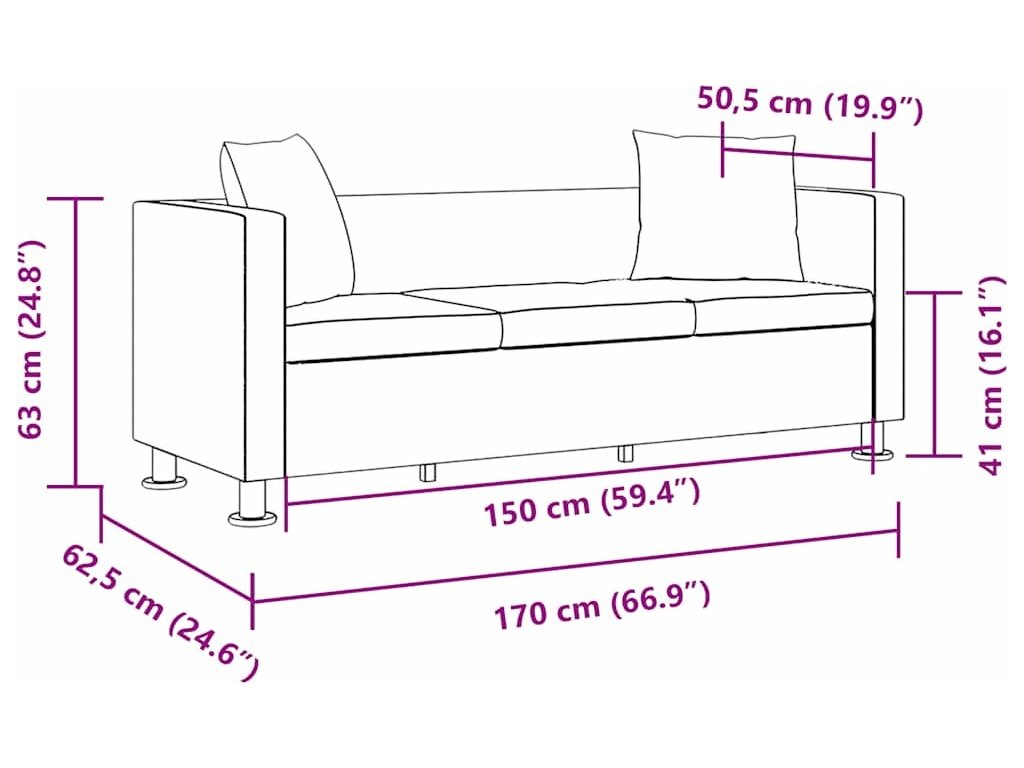 Balení obsahuje 1 x trojmístnou pohovku a 2 x volný polštář.