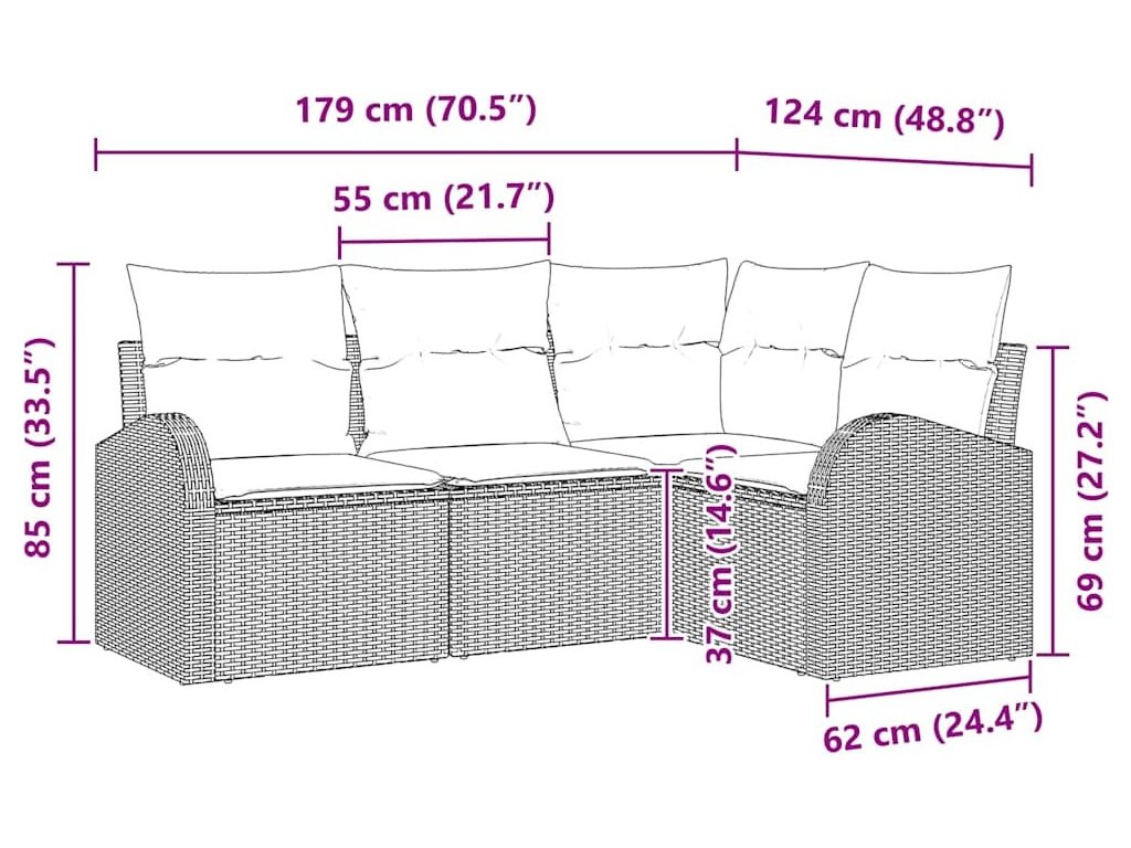 - 4 x sedací polštář: 55 x 55 cm (D x Š)