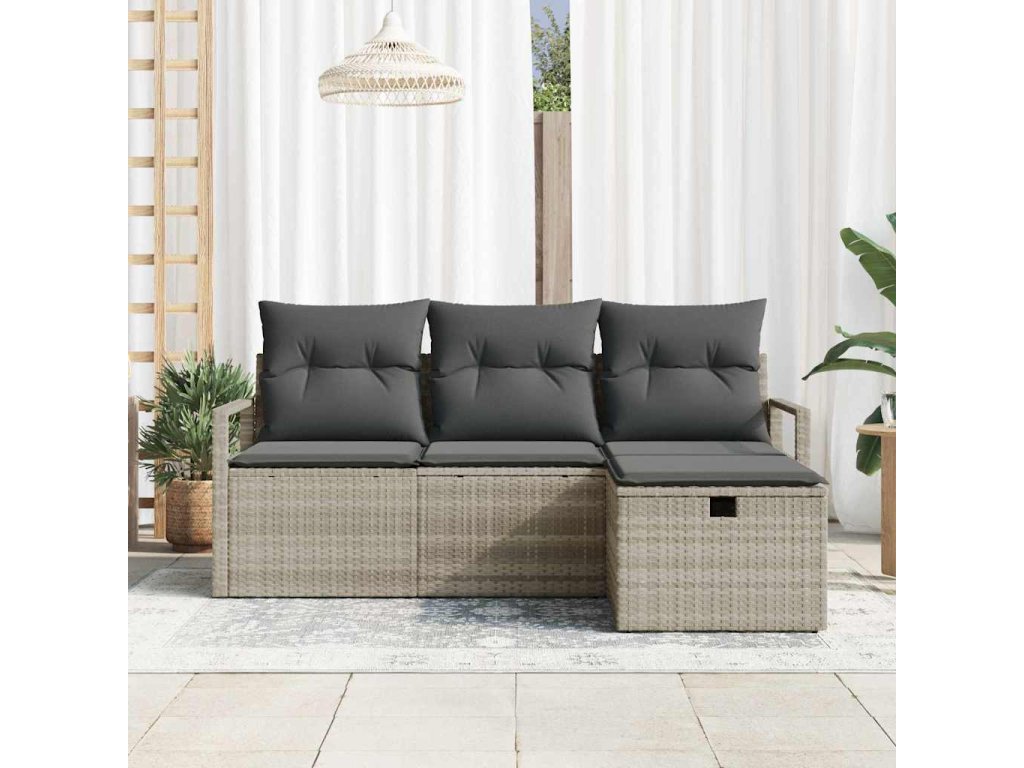 Set pohovek s polštářem s úložištěm 4 pcs Světle šedá polyratan [3359151]