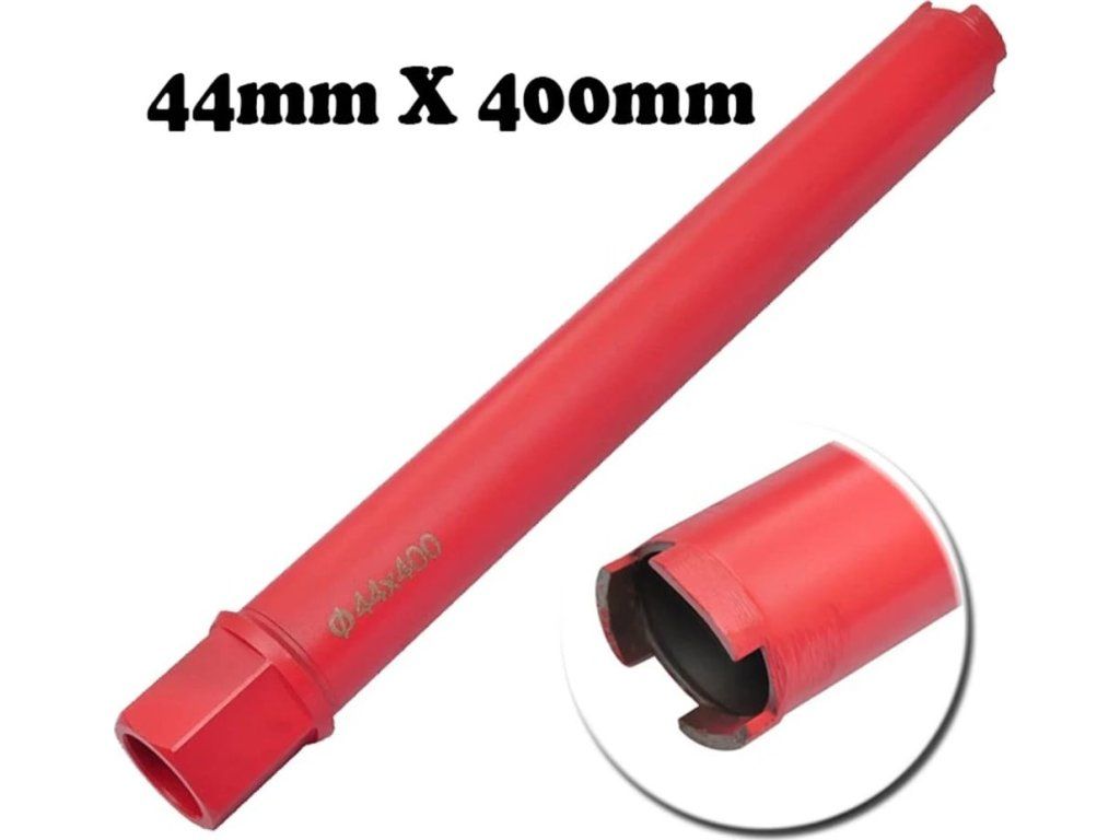Náš velmi kvalitní a robustní 44 x 400 mm jádrový vrták do elektrických jádrových vrtaček je vhodný na vrtání žuly, tvrdého kamene, betonu, zpevněných betonových povrchů a jiných pevných materiálů. Jelikož je tento vrták velmi kvalitní, chod vaší vrtačky bude hladký.