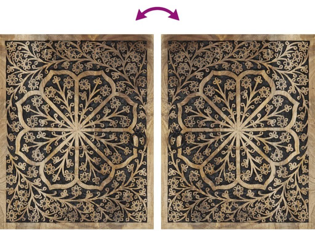 - Masivní mangovníkové dřevo: Masivní mangovníkové dřevo je pevné tropické tvrdé dřevo, ze kterého se vyrábí robustní nábytek. Krásná kresba dřeva propůjčuje každému kusu nábytku jeho jedinečný a od všech ostatních lehce odlišný vzhled.