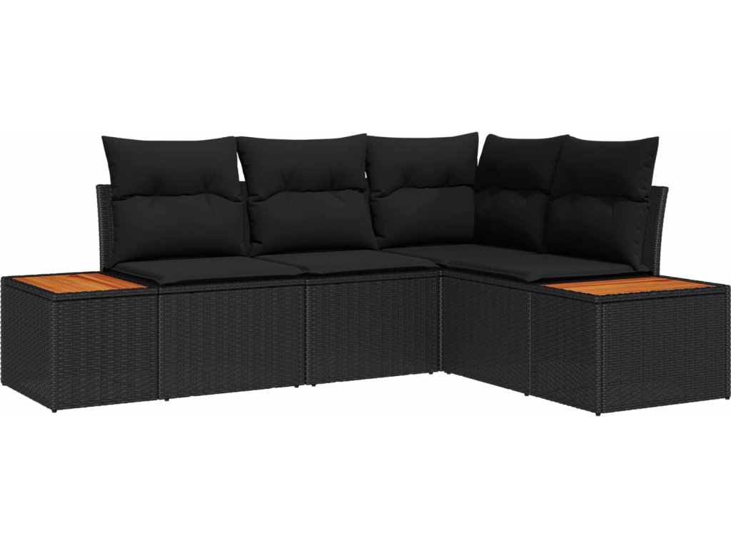 Sada zahradních pohovek s polštářem 5 pcs Černá Poly ratan [3348074]