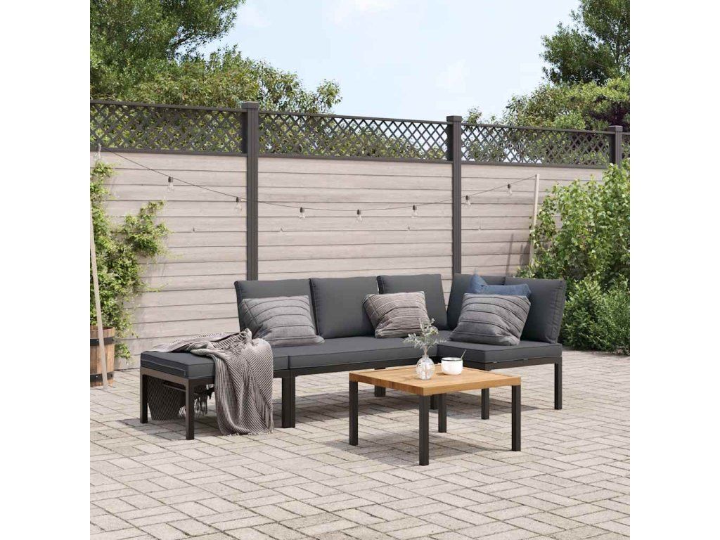 4dílná zahradní sedací souprava s poduškami černá hliník [3283687]