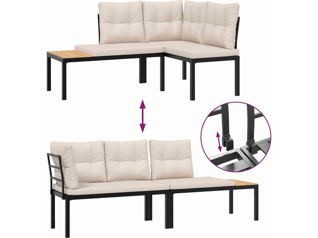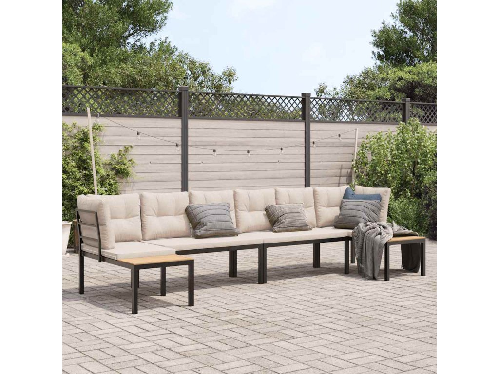 4dílná zahradní sestava a podušky černá práškově lakovaná ocel [3283669]