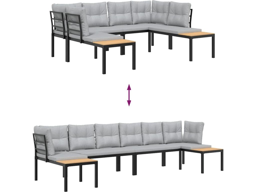 - Modulární design: Tato sada venkovního nábytku se vyznačuje modulární konstrukcí, je tedy zcela flexibilní a lze ji snadno přemisťovat, takže si můžete uspořádat venkovní nábytek dle vašich potřeb.
