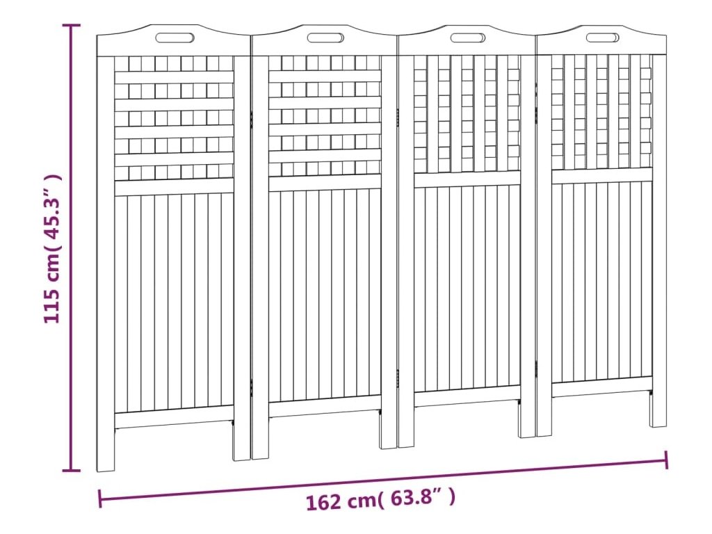 4dílný paraván 162 x 2 x 115 cm masivní akáciové dřevo [318548]