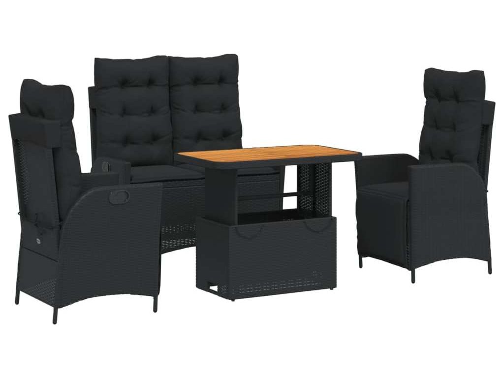 4dílný zahradní jídelní set s poduškami černý polyratan [3277456]