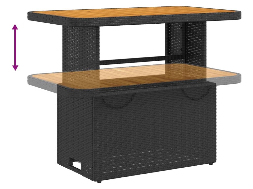 - Nastavitelná deska stolu: Desku stolu lze zvednout, aby se stůl zvýšil, čímž se venkovní stůl promění z konferenčního stolku na jídelní stůl. Je ideální pro pozvání hostů nebo pro stolování venku.