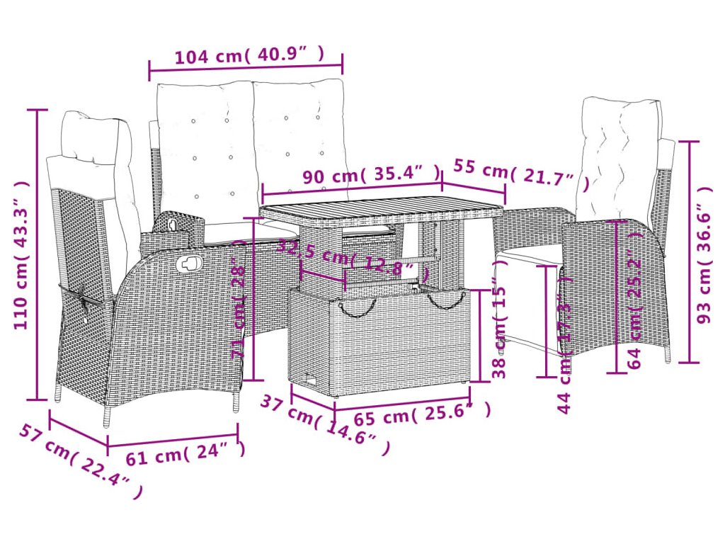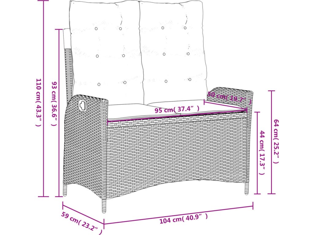 - Rozměry pro sezení: 104 x 59 x 93 cm (Š x H x V)