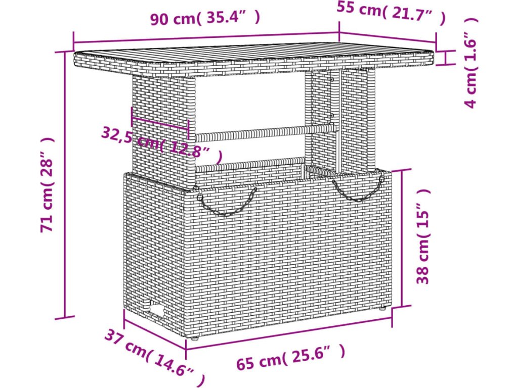 - Materiál: PE ratan, práškově lakovaná ocel, masivní akáciové dřevo s olejovou úpravou