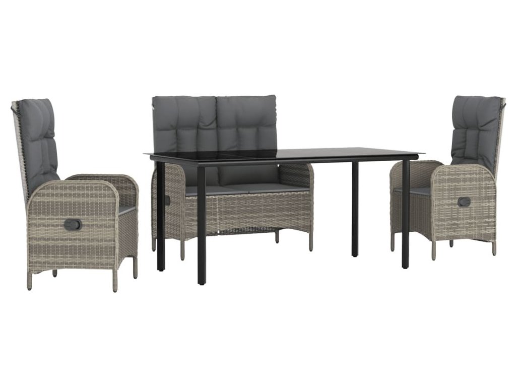 4dílný zahradní jídelní set s poduškami šedá polyratan [3203507]