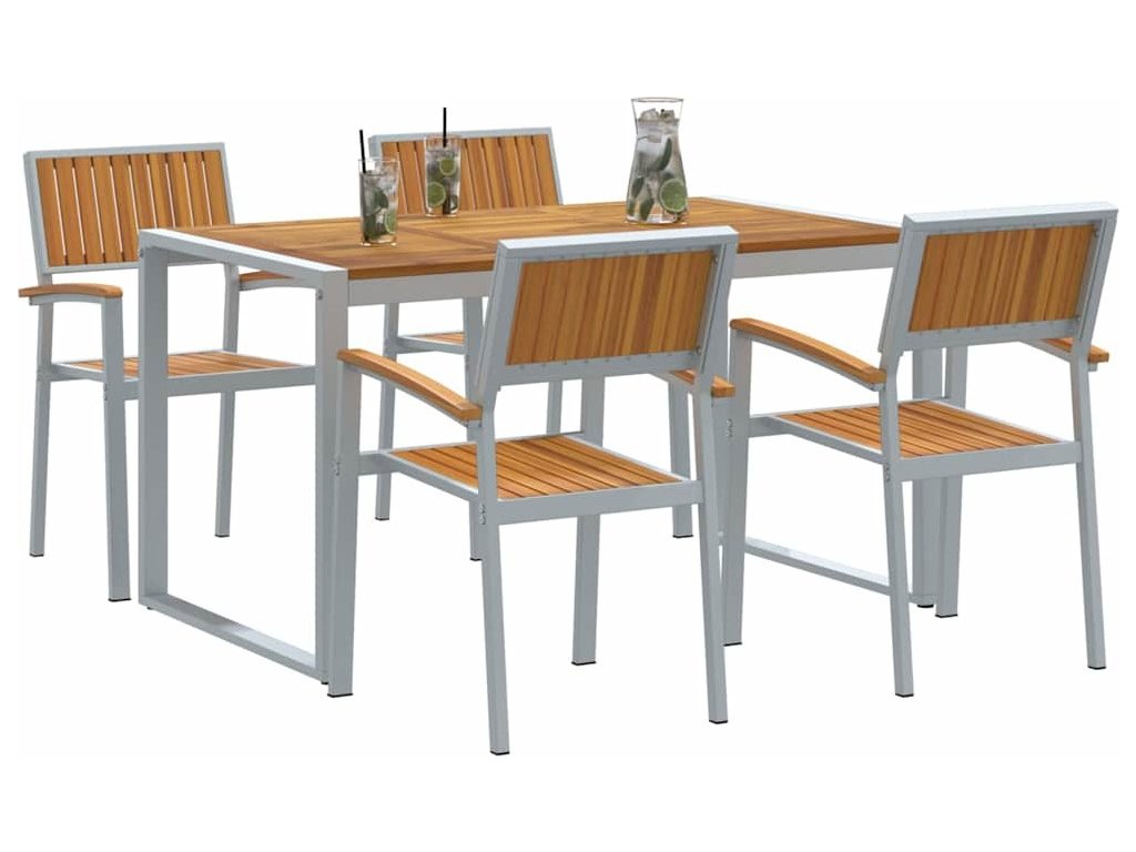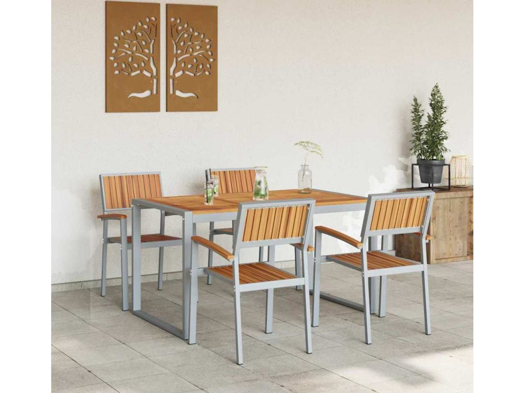 Tento moderní zahradní jídelní set vám usnadní užít si venkovní prostory jako zahrady nebo terasy. Skvělá kombinace masivního akáciového dřeva a oceli je reprezentantem moderního stylu, který splňuje potřeby letních večírků, klidných večeří a garden party. Design perfektně doplní každé prostředí, ať už se jedná o bujné zahrady nebo minimalistické terasy, a zaručí, že vaše venkovní sezení bude stylové a praktické.