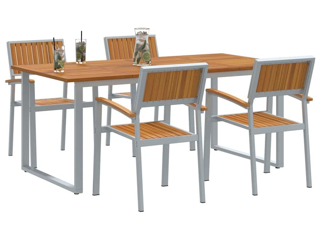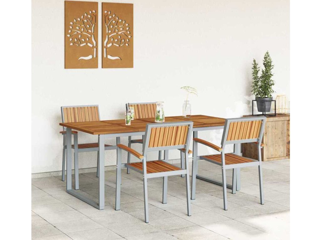 - Součásti: Set obsahuje pohodlné opěrky rukou a opěrky zad vyrobené z akáciového dřeva, a k tomu ještě prostorný obdélníkový stůl. Použití akáciového dřeva zajišťuje pohodu a trvanlivost, což je skvěle pro rodinné večeře a venkovní party.
