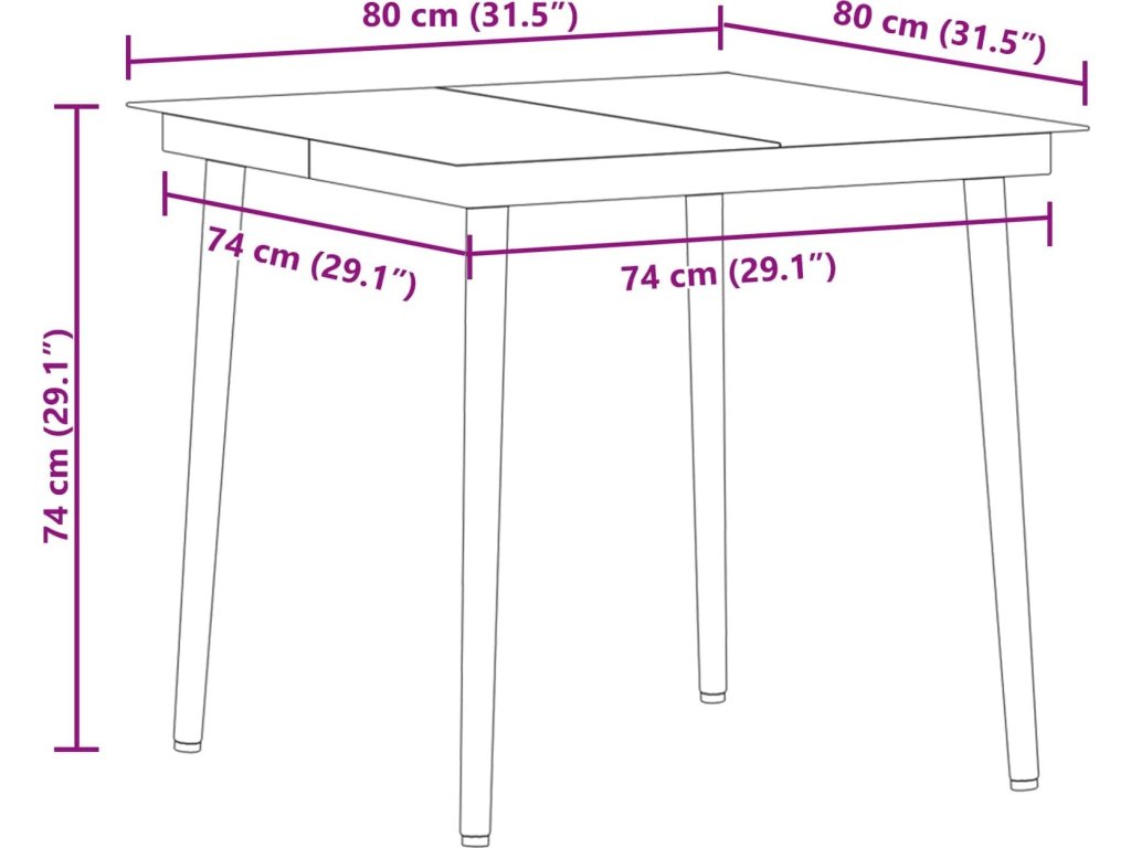 - 1 x Zahradní stůl: 80 x 80 x 74 cm (D x Š x V)