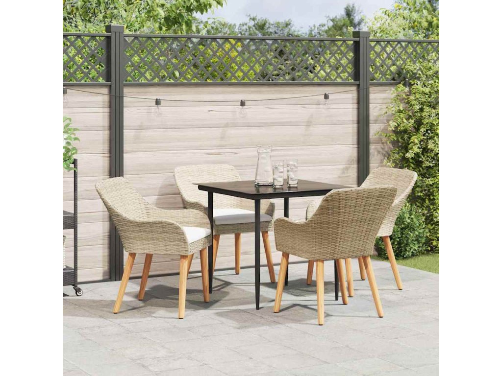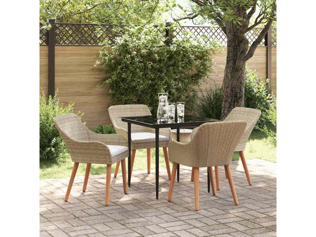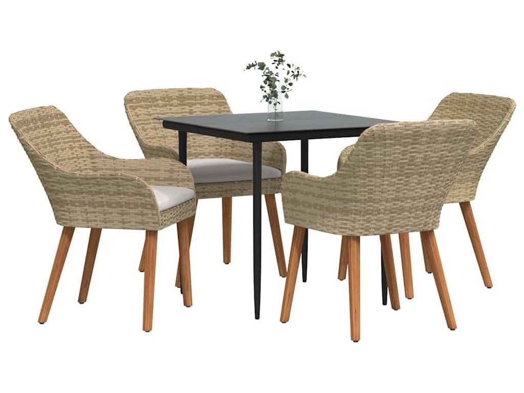 Zahradní jídelní souprava s polštářem 5 pcs Béžová polyratan [3261692]
