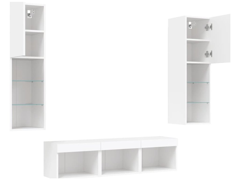 - RGB LED světla: TV jednotka je vybavena živými RGB LED světly. Různé přizpůsobitelné nabídky vám umožní snadno změnit barvu světel nebo dokonce i nastavit světla tak, aby se přizpůsobila automaticky. Tato LED světla nejen podtrhují moderní vzhled plovoucí TV skříňky, ale také jí dodávají na módním půvabu.