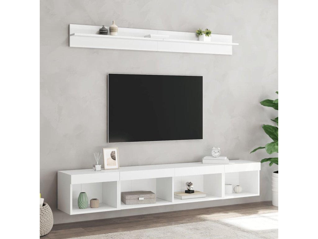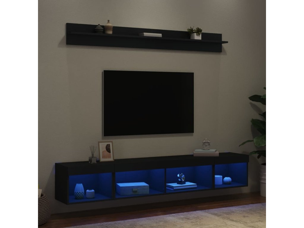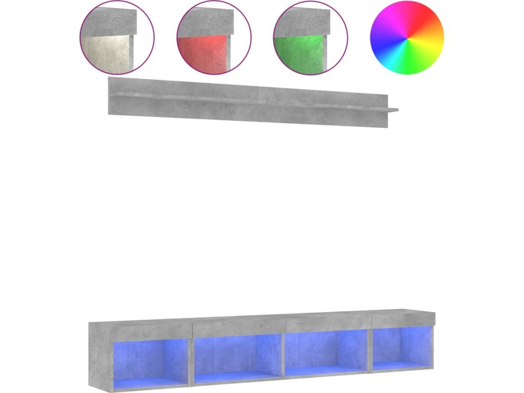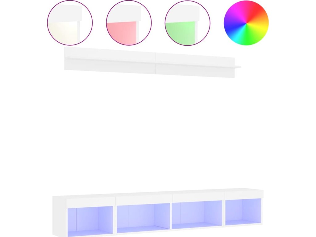 - RGB LED světla: TV jednotka je vybavena živými RGB LED světly. Různé přizpůsobitelné nabídky vám umožní snadno změnit barvu světel nebo dokonce i nastavit světla tak, aby se přizpůsobila automaticky. Tato LED světla nejen podtrhují moderní vzhled plovoucí TV skříňky, ale také jí dodávají na módním půvabu.
