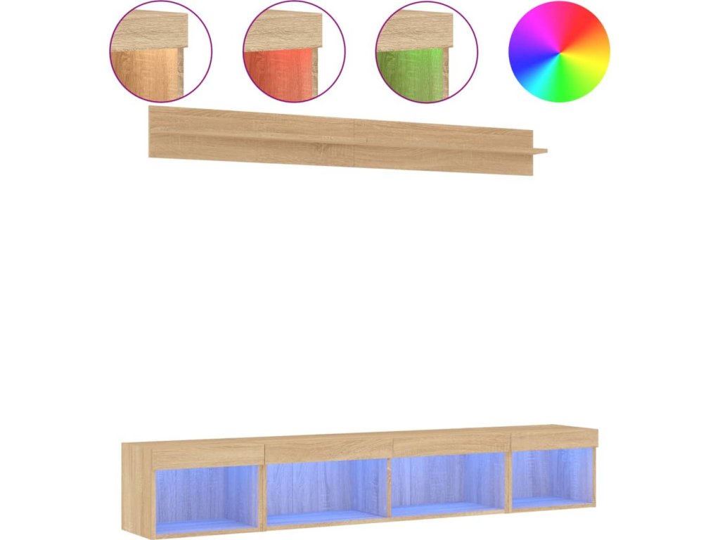 5dílná obývací stěna s LED osvětlením kompozitní dřevo [3216683]