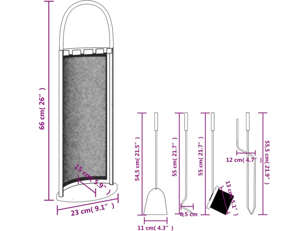 5dílná sada nářadí do krbu 23 x 15 x 66 cm ocel [156379]
