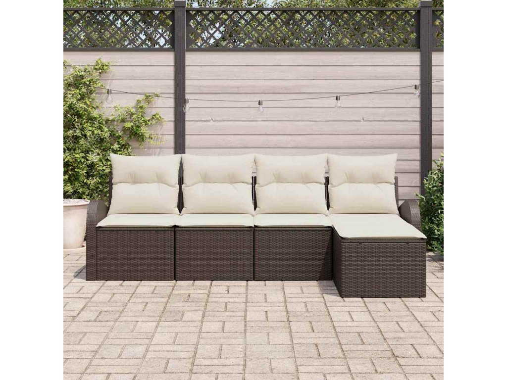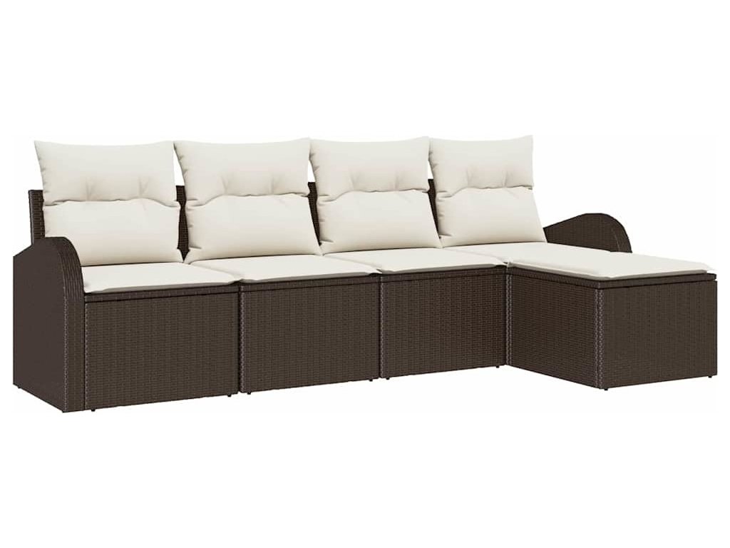 Set pohovek s polštářem 5 pcs Hnědá a bílá polyratan [3354667]