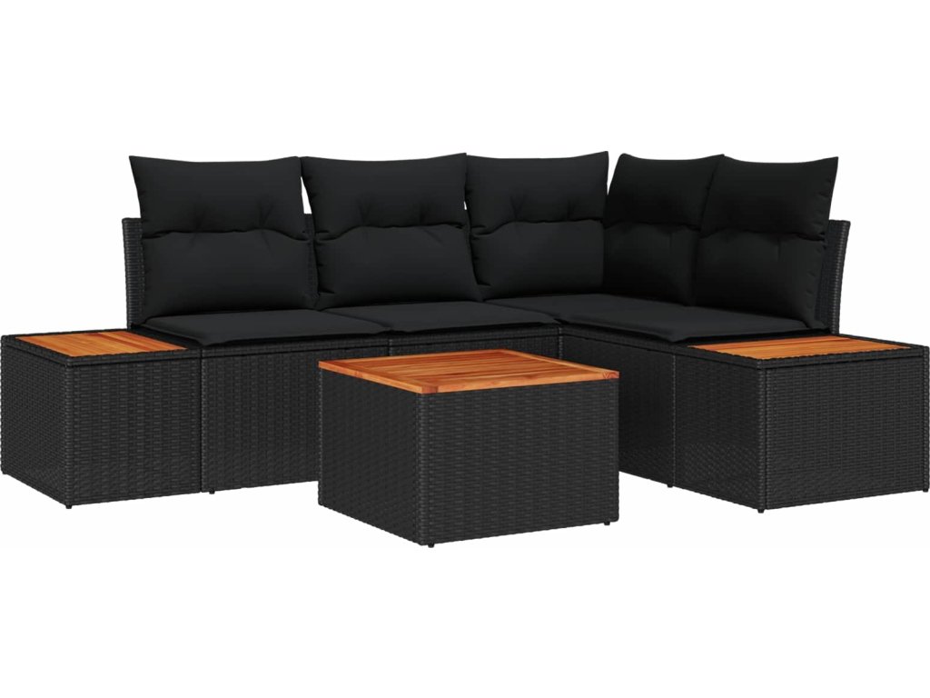 Sada zahradních pohovek s polštářem 5 pcs Černá polyratan [3348079]