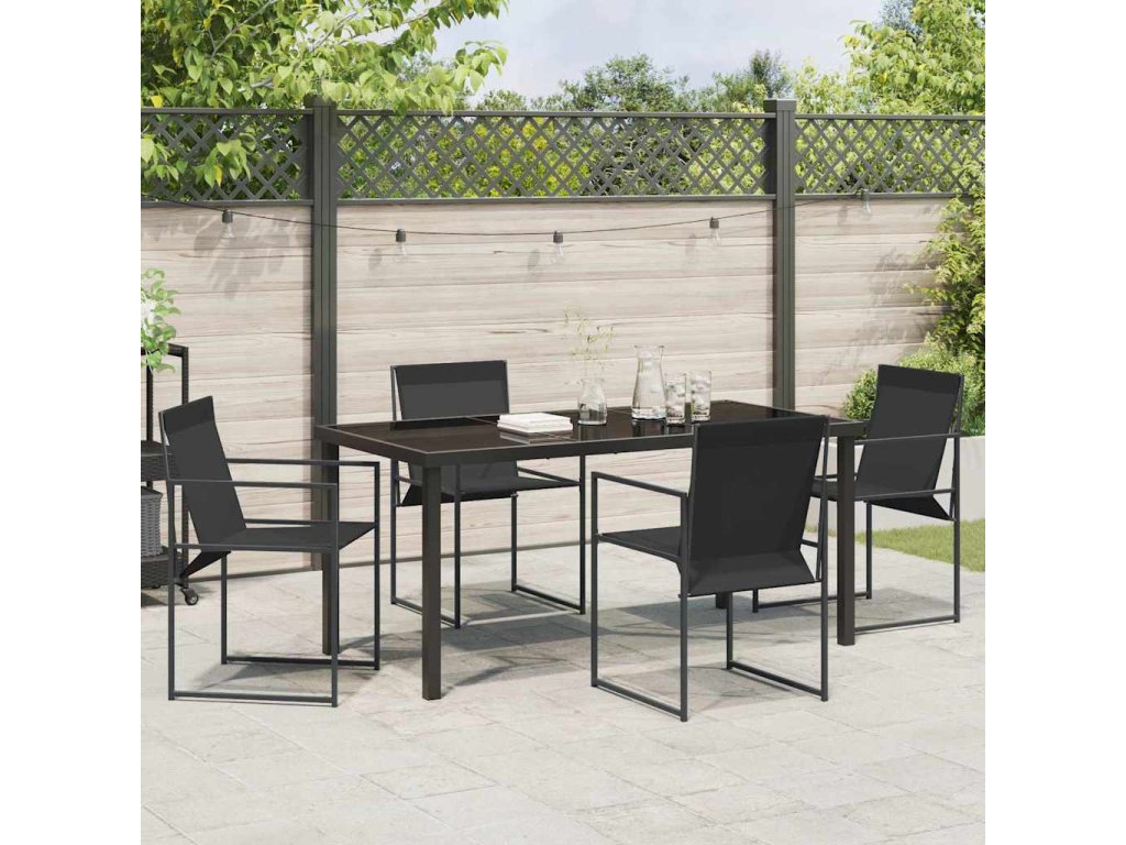 Zahradní jídelní souprava 5 pcs Černá Práškově lakovaná ocel [3379343]