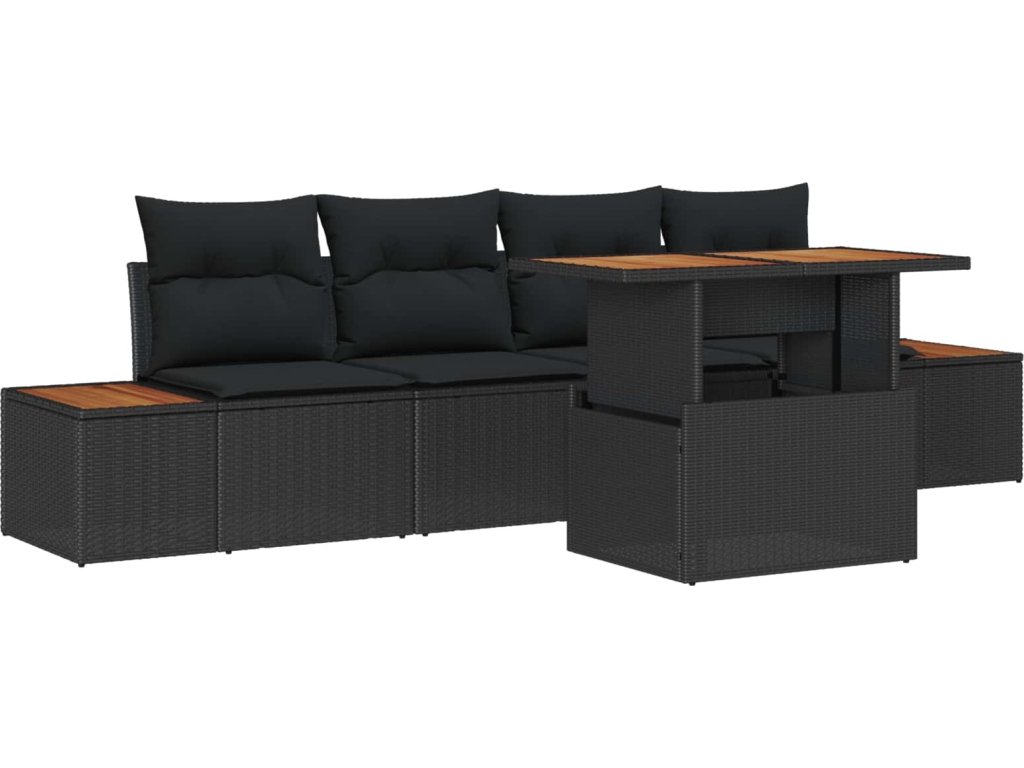 Zahradní jídelní souprava s polštářem 5 pcs Černá a hnědá [3350020]